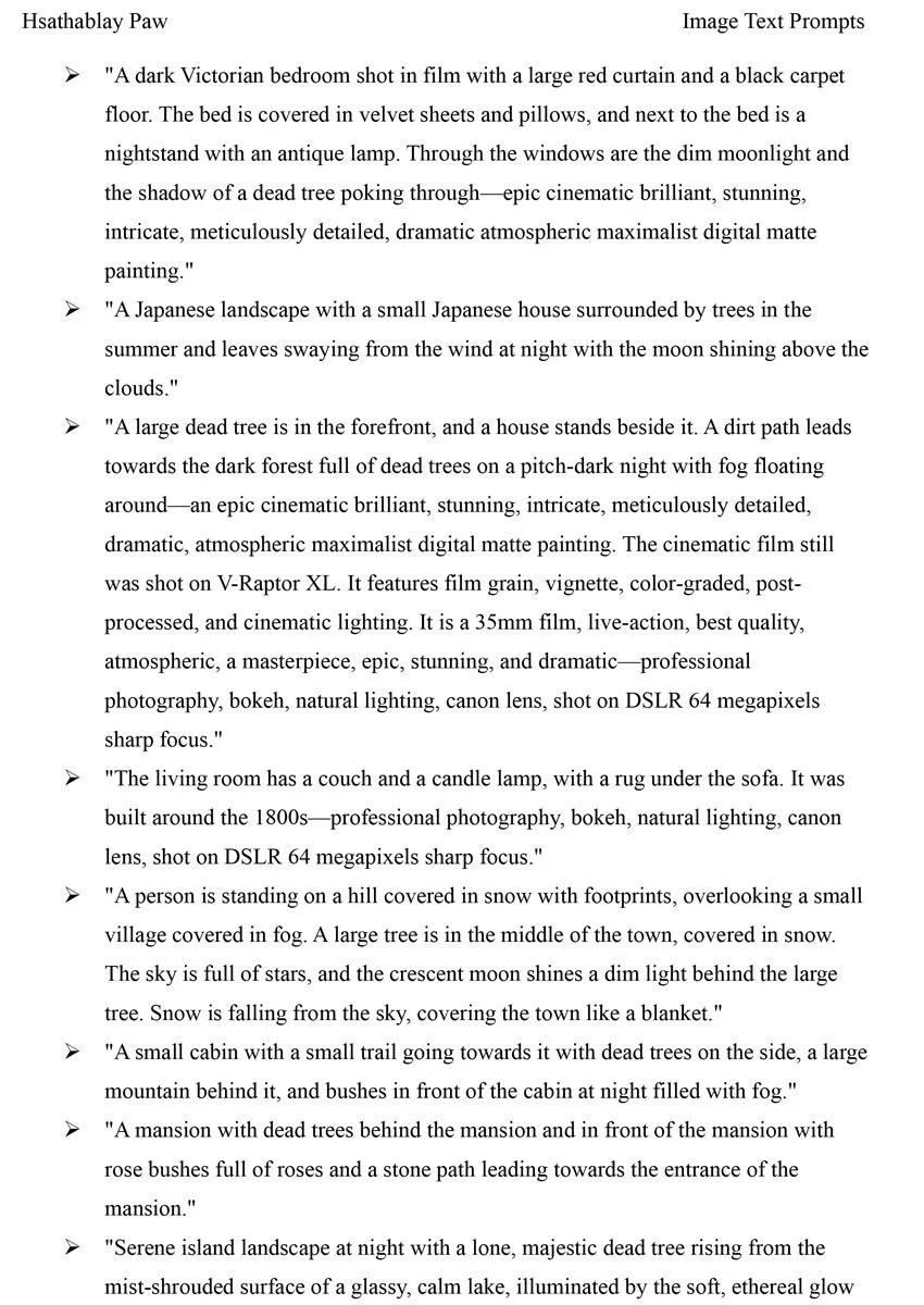 My choice was to make the images black and white and look like pictures taken in the past. Also, I did not add a realistic touch to most of the photos; instead, I made them so that people could see they were AI-generated images. There is no artist statement for these photos, only the text-to-image prompts. The AI Image generation site I used was NightCafe.